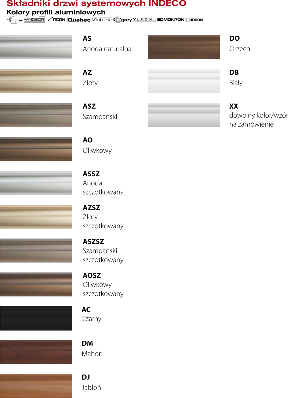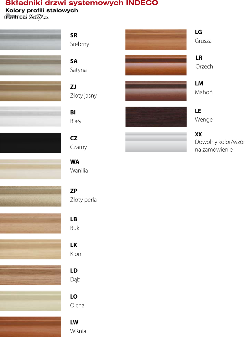 Dostępne w ofercie składniki drzwi systemowych: